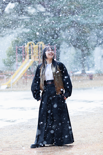 もう一つ成人の日記念のお写真を。 現在服飾の勉強中の彼女。実際に自分で制作した衣装で撮影に臨みました。 この日は雪が一日中ちらつくという寒い中での撮影となりましたが それが功を奏してとてもいい雰囲気のお写真に! 一味違った個性的な記念のショットの数々です。